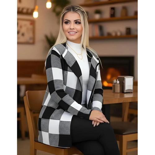 Cardigan Xadrez Casaco Kimono Sobretudo Tricô Moda Inverno Feminino