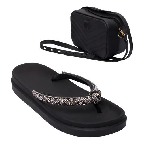 Chinelo Papete Feminino Nó Strass Brilho Leve+ Bolsa De Obro