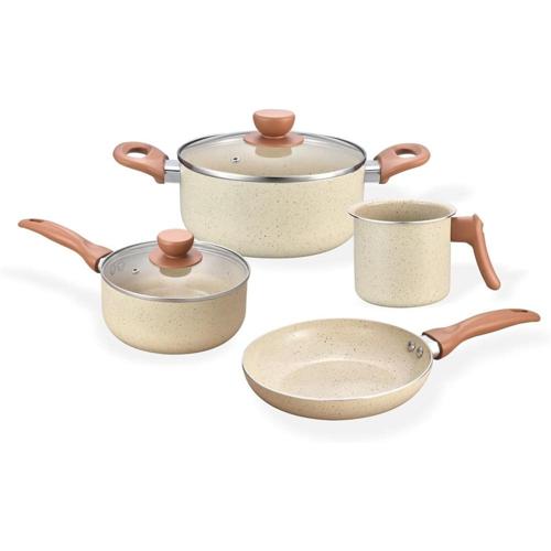 Início » Eletrodomésticos » Oikos – Jogo com 4 Panelas Antiaderentes de Revestimento Cerâmica com Tampa de Vidro Terrara Bege com 5 Camadas para Fogão a Gás, Elétricos, Cerâmicos e Halogênio