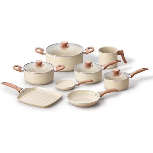Início » Eletrodomésticos » Oikos – Jogo Com 8 Panelas Antiaderentes De Revestimento Cerâmica Com Tampa De Vidro Terrara Bege Com 5 Camadas Para Fogão a Gás, Elétricos, Cerâmicos e Halogênio
