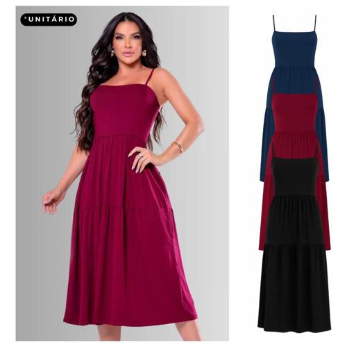Vestido Verão Elegante Midi Liso Alça Casual – Feminino